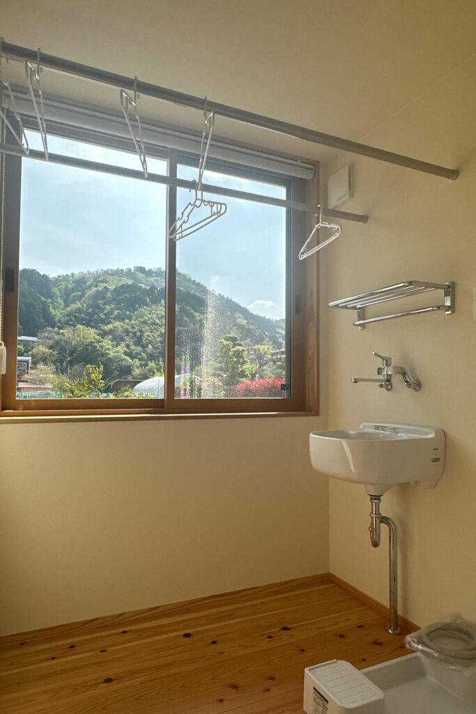 この室内干しスペースはウッドデッキにつながっているので、外干しへの動線がスムーズです。