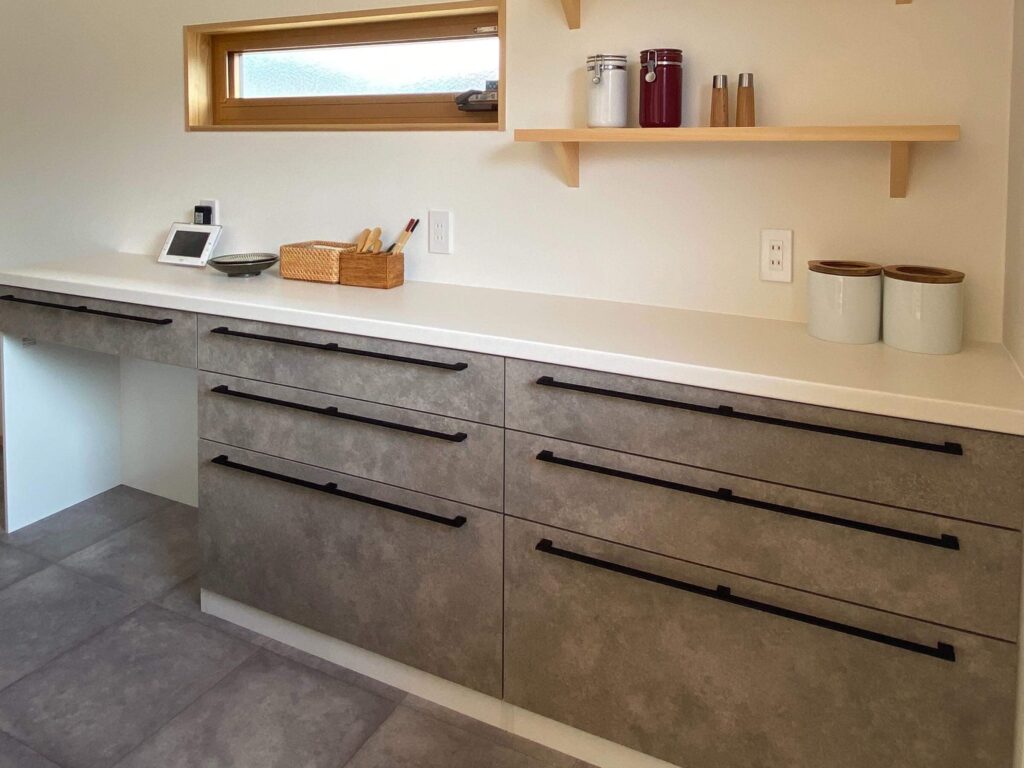 下の写真はオープンキッチンのため家電用のカウンターを作りませんでした。