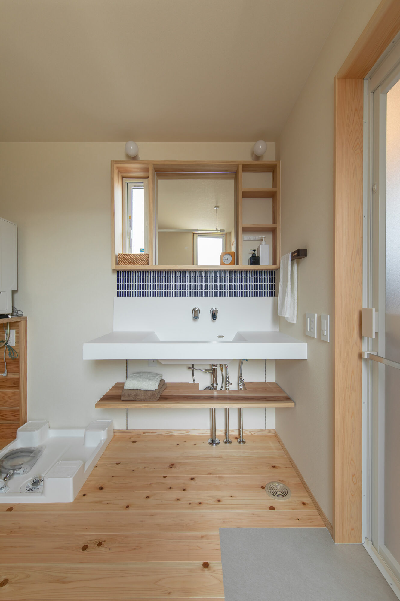 そんな現実的なことと同時に、欲しかった造作キッチンや造作洗面台なども実現し、細かなサイズ決めなど繰り返した打ち合わせを懐かしく思います。家族専用と割り切ることで広くなったランドリーや、冷蔵庫にお便りを貼らずに済むように磁石の付く壁をキッチンに設けたりなど、毎日の暮らしのプチストレスを減らせました。