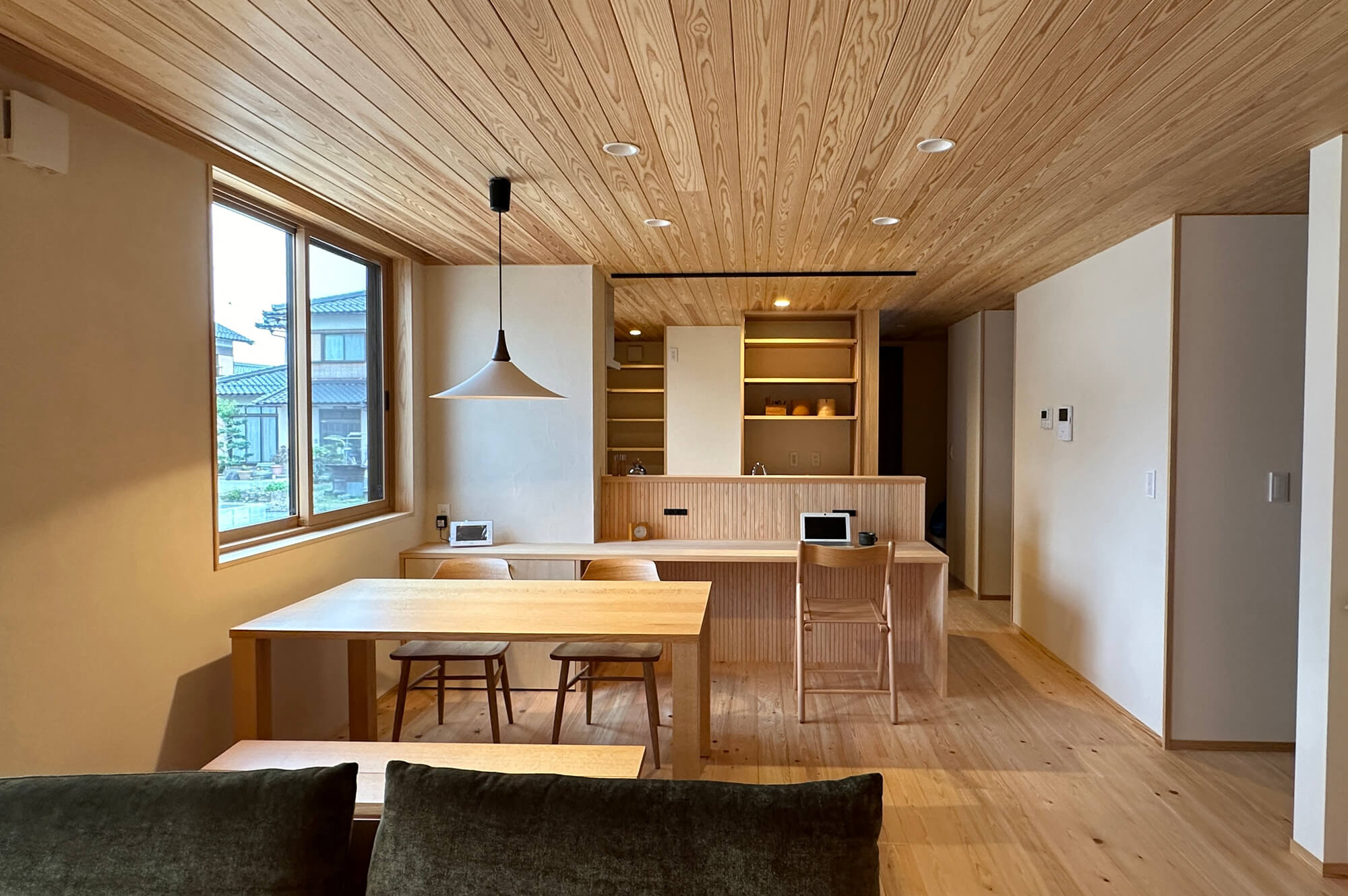 家族の暮らしを見守るのは本棚だけではなくて、実は構造材にご先祖様から受け継いだ山の木がたくさん使われているという、家自体に守られているかのような物語を持つお家です。