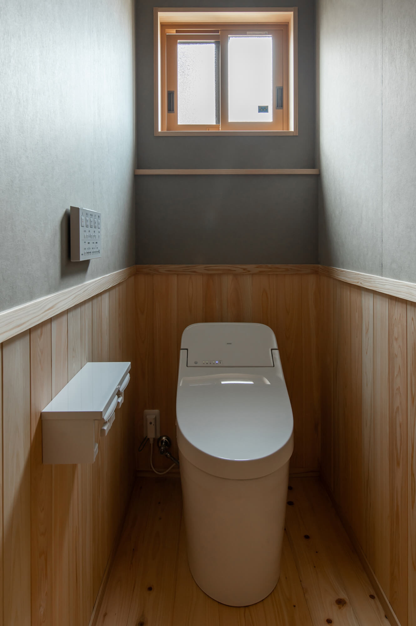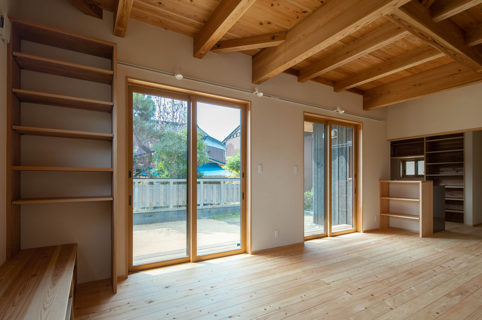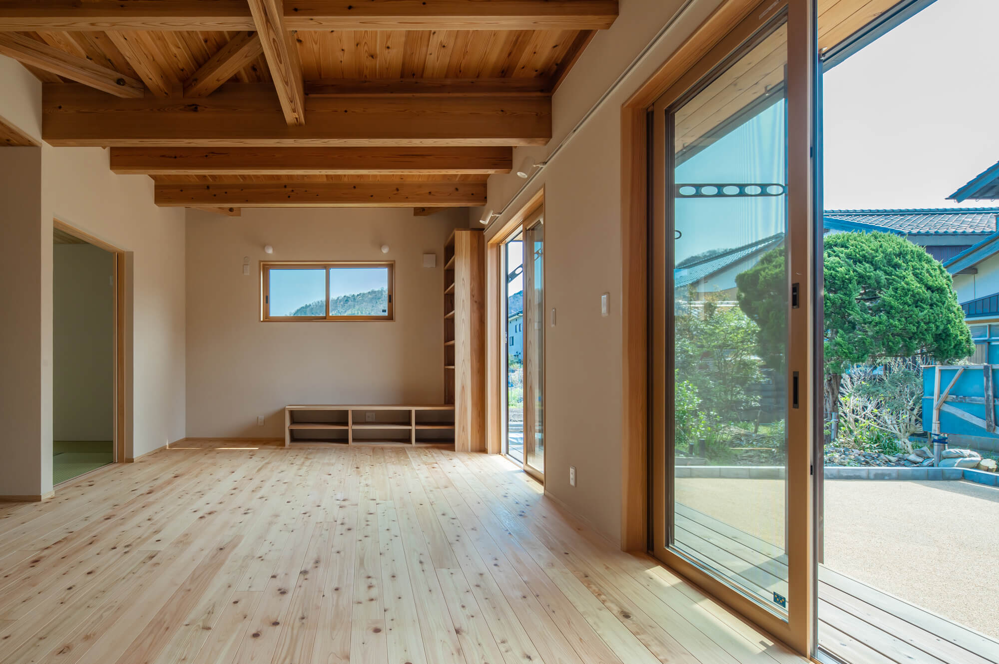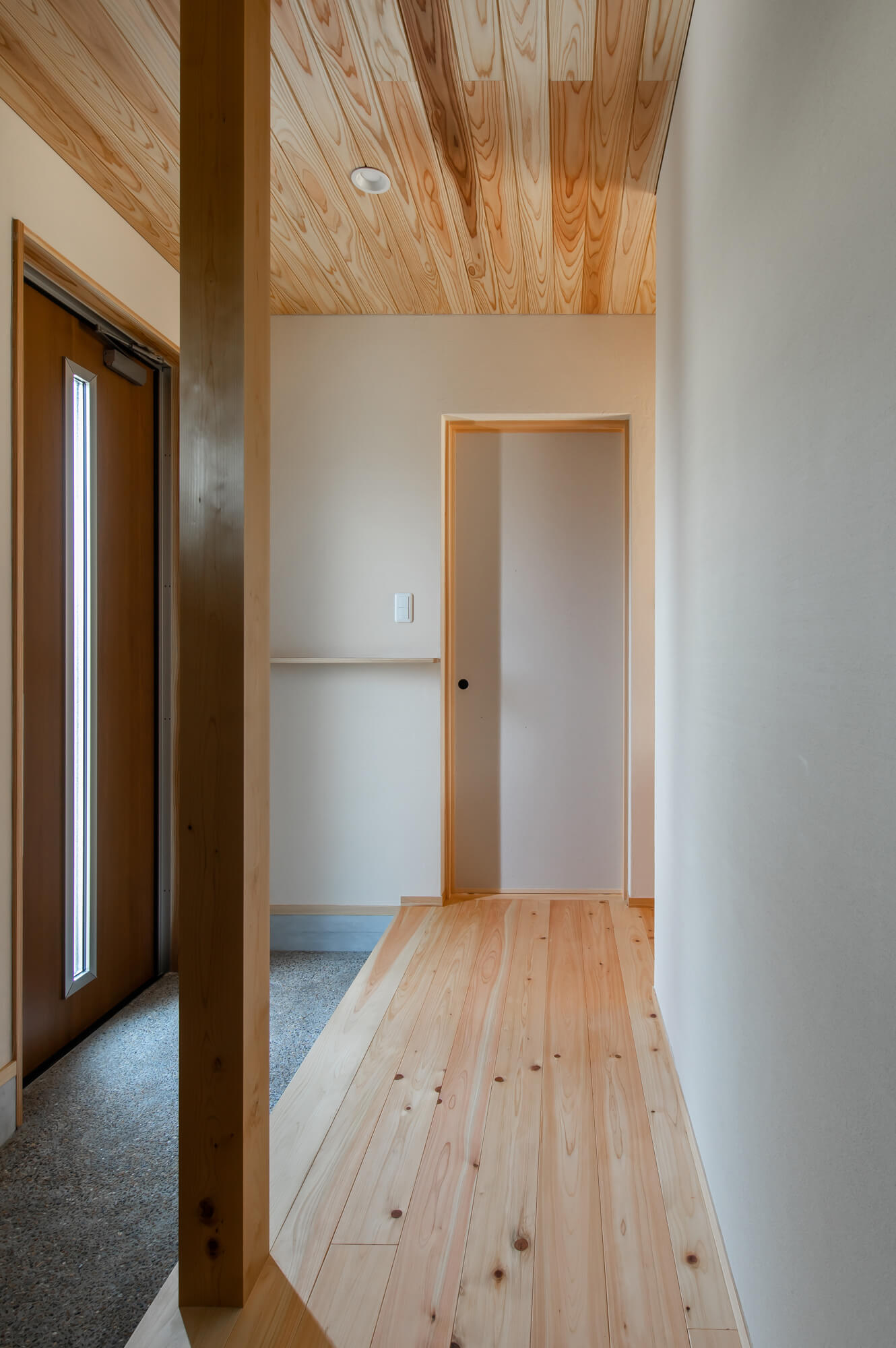1階の天井が2階の床となる「ササラ天井」を採用され、将来吹き抜けを作れるような仕上げ、仕切れる子供室や2階ホールなど、家族と共に変化する家となりました。内部も塗り壁と無垢の木で作られ、心地よい空間になりました。