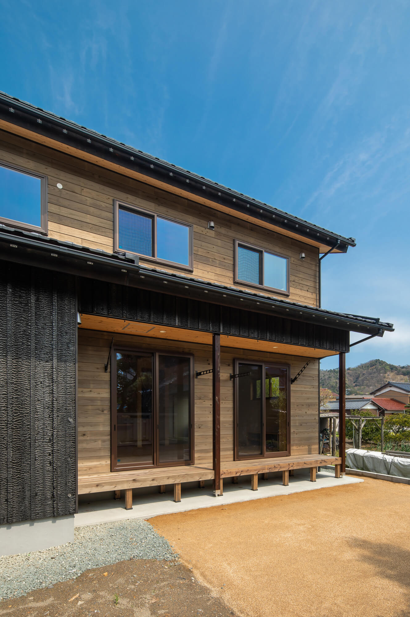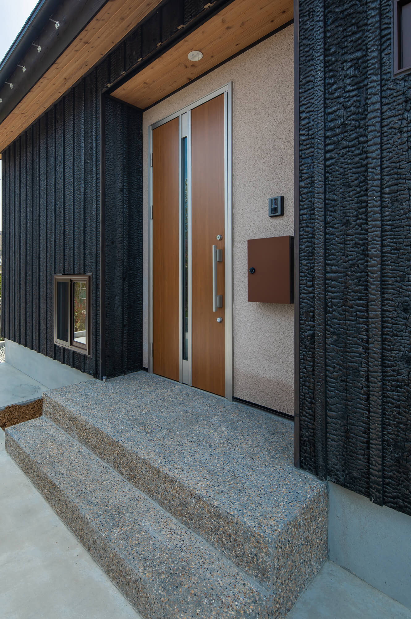 外壁に使った天竜焼杉が印象的で落ち着いた佇まいを見せています。天竜焼杉やウッドロングエコ杉板で仕上げた外壁はほぼメンテナンスフリーで暮らせます。