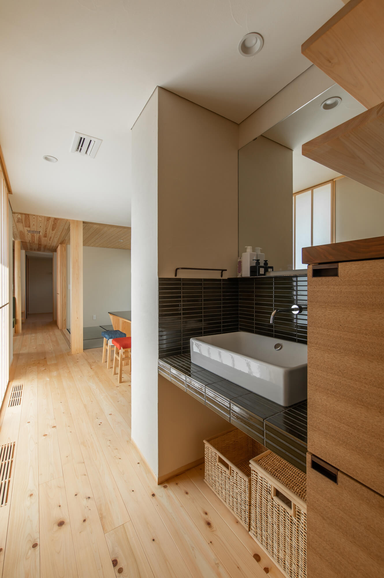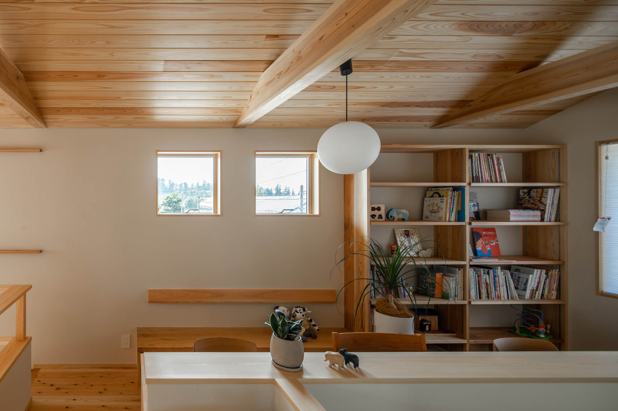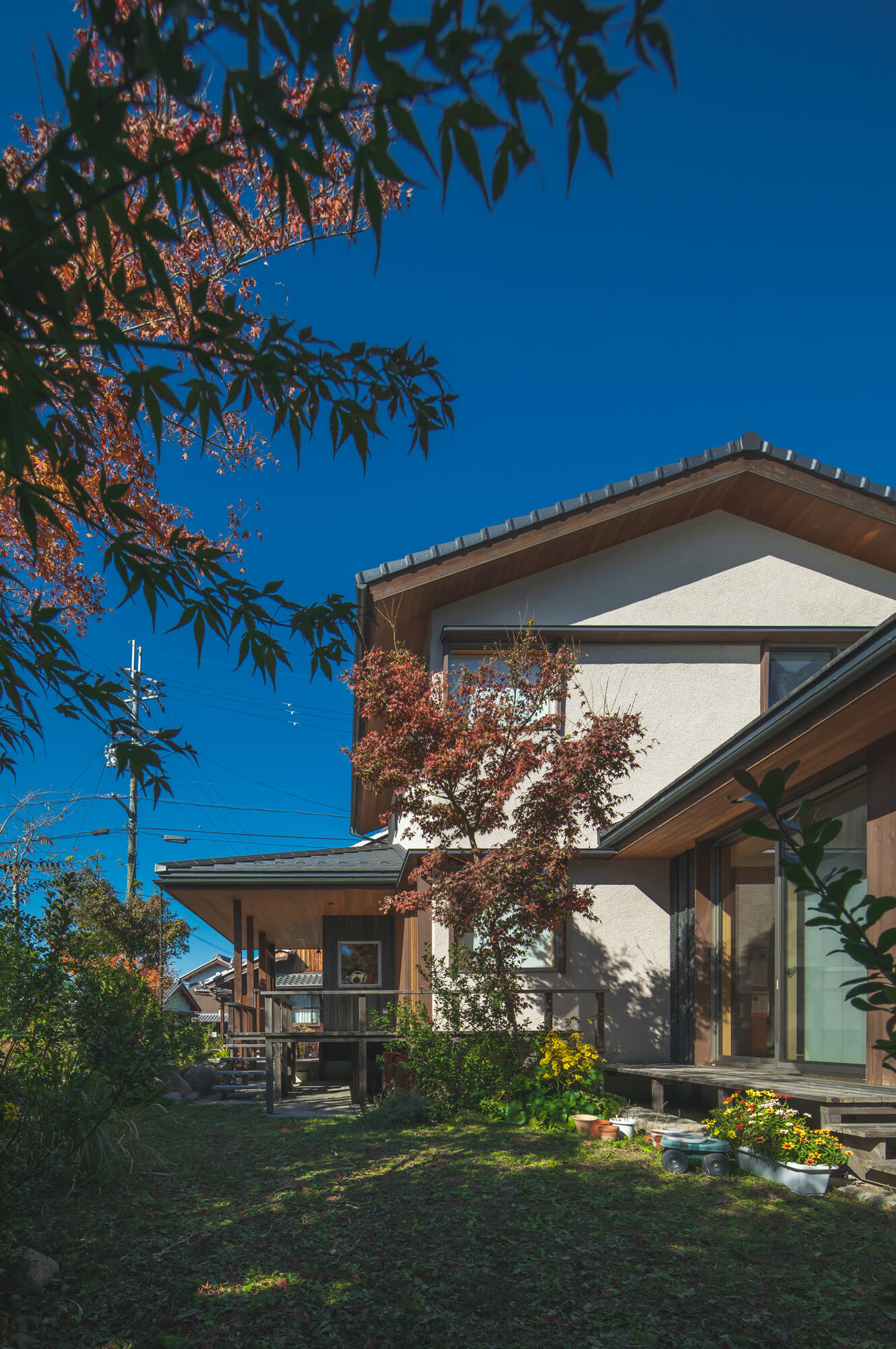 家族そろってでも、ひとりでいても楽しい家。ひとりでいても家族の気配がわかり、くつろぐ場所があり仕事するカウンターがある。いろんな暮らし方が出来るたくさんの居場所のある家。キッチンや洗面台を作ることで愛着が湧き、造作ソファやオリジナル照明に心がワクワクし、既製品では得られない自分らしさの詰まった家になりました。大きなウッドデッキとつながるように庭があり、庭の一角には畑もある、家の中でも外でも楽しい家になりました。こちらの家は実際にお住いの家をモデルハウスとしてご覧いただけます。