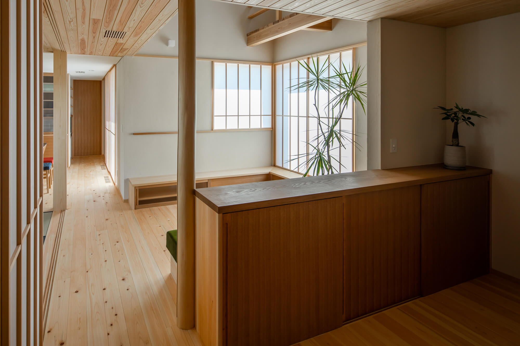 玄関からリビング、ダイニングまでひと続きで見渡せるこの家は、仕切りがないことで視線を遠くへ抜けさせ、広く感じるのです
