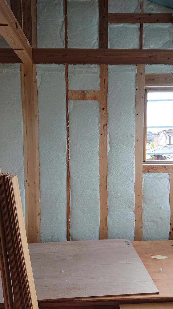との事でメーカー推奨ではありませんが、スキマが出来て断熱欠損するぐらいならこういう入れ方もアリなんではと思いましたので、今回は大工さんの提案通りにしてもらう事にしました。