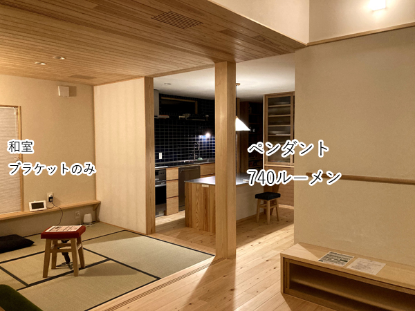 上の写真は和室はブラケットのみ、DKはペンダントのみ点灯しています。