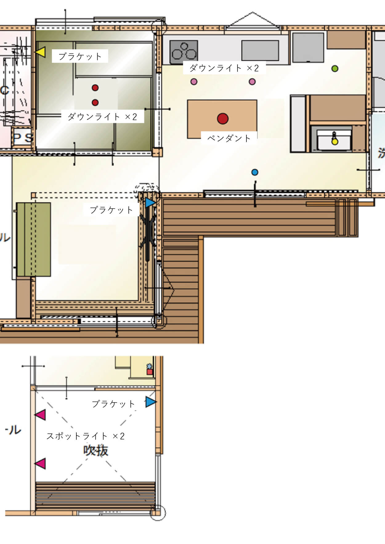 例えば上の和室やDKの天井にシーリングライトをつければとても明るくはなりますが、くつろぐ灯りにはなりませんね。