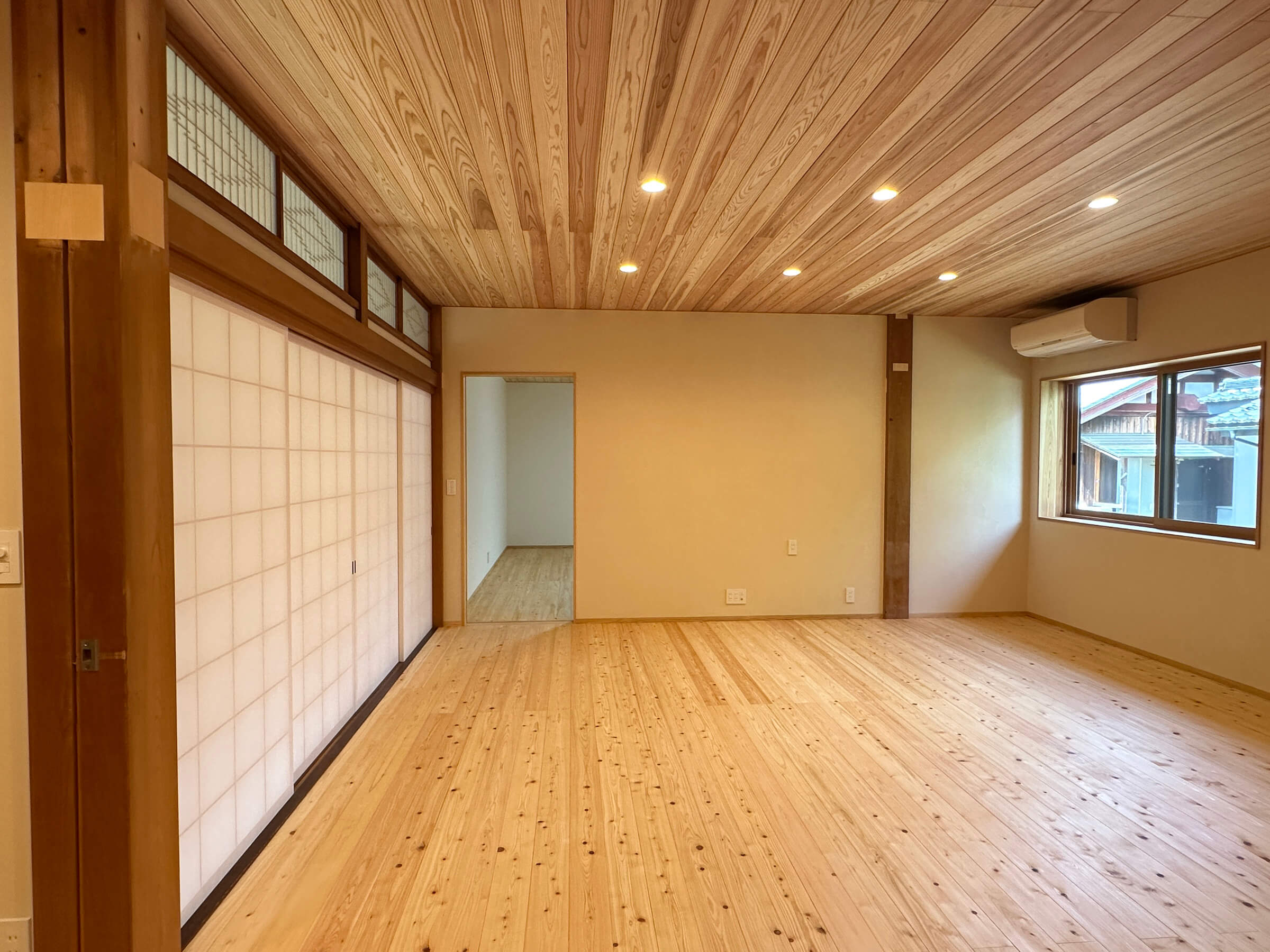 本来リノベは家全体を改修するのがベストです。ただ、こうした田舎の大きな家を丸ごとリノベとなるとなかなか現実的ではありません。そこで立派な座敷と出の間は基本そのままにし、寝室も1階に下ろすことで2階の改修も計画に入れませんでした。家の中で断熱区画を設けることで、出来るだけ寒さ暑さの解消とコストを小さく抑えるようにしました。
